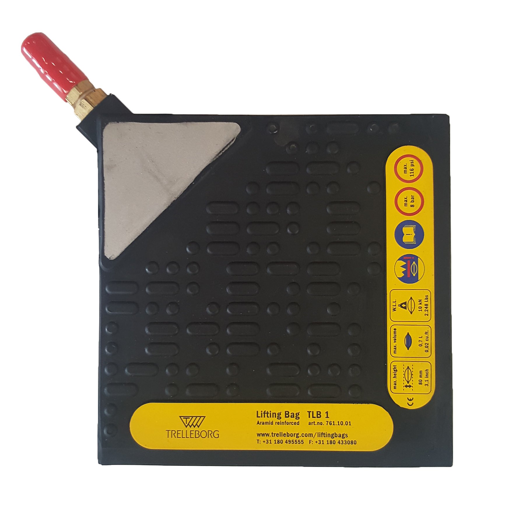 Het RLB 1 hefkussen is een gevulkaniseerd hefkussen. De afmetingen zijn: 140 x 140 x 23mm, het gewicht is 0,4 KG. De maximale hefcapaciteit bij 8 Bar bedraagt 11,5 KN ofwel ca. 1,1 Ton en de maximale hefhoogte is 75mm.